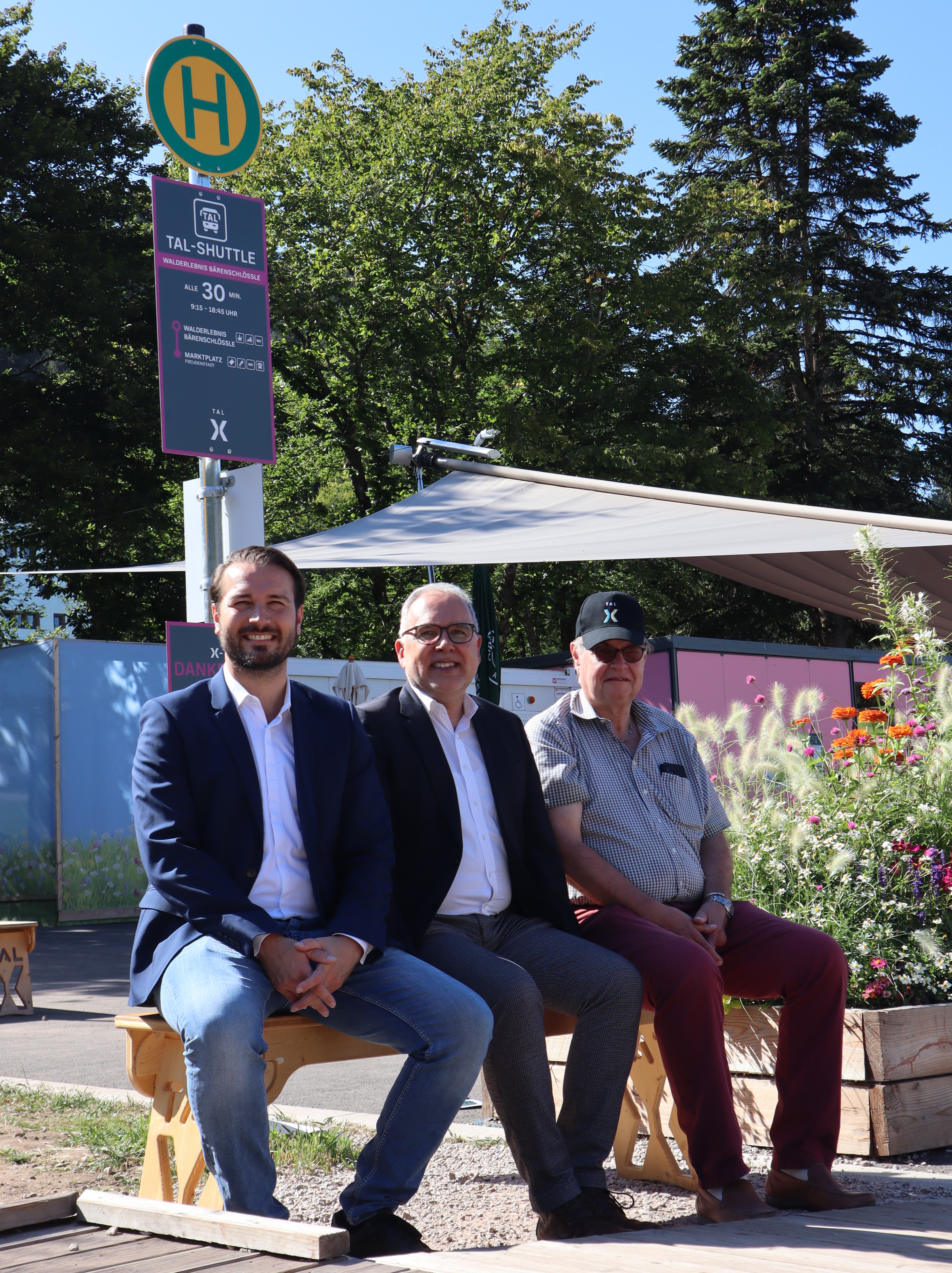 Die Gartenschau Tal X bringt viel Leben und Aufmerksamkeit in‘s Christophstal – nicht nur zu Fuß oder mit dem Rad, sondern ebenso mit Bus, Bähnle oder Bahn. Aber auch nach der Gartenschau soll sich die öffentliche Mobilität weiterhin zum Positiven verändern. Deshalb wird ab dem 1. November 2025 eine neue virtuelle Haltestelle für das ÖPNV-Taxi „MobilERleben“ in Christophstal eingerichtet. Damit wird das obere Tal besser erreichbar, zum einen für Anwohner, zum anderen aber ebenfalls für die Gäste. Im Rahmen eines gemeinsamen Pressetermins berichtete Oberbürgermeister Adrian Sonder begeistert von den Entwicklungen: „Wir sehen hier ein gelungenes Beispiel für funktionierende Kommunalpolitik in Freudenstadt. Bei einem Bürgergespräch im Christophstal sprach mich eine Anwohnerin direkt darauf an, dass in Christophstal eine virtuelle Haltestelle für das ÖPNV-Taxi fehlt. Gemeinsam mit dem Landratsamt haben wir schnell eine Lösung gefunden. So wird aus einer Idee aus der Bürgerschaft eine konkrete Verbesserung für alle.“