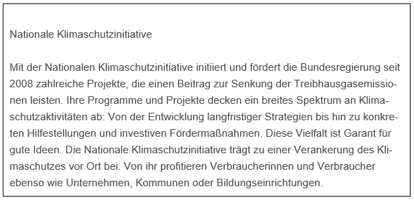 Die Stelle der Klimaschutzmanagerin wurde im Rahmen der Nationalen Klimaschutzinitiative des Bundesministeriums für Wirtschaft und Klimaschutz, vertreten durch den Projektträger Zukunft – Umwelt – Gesellschaft (ZUG) gemeinnützige GmbH, gefördert (Förderkennzeichen 67K22493), Projektlaufzeit: 16.10.2023 bis 15.10.2025